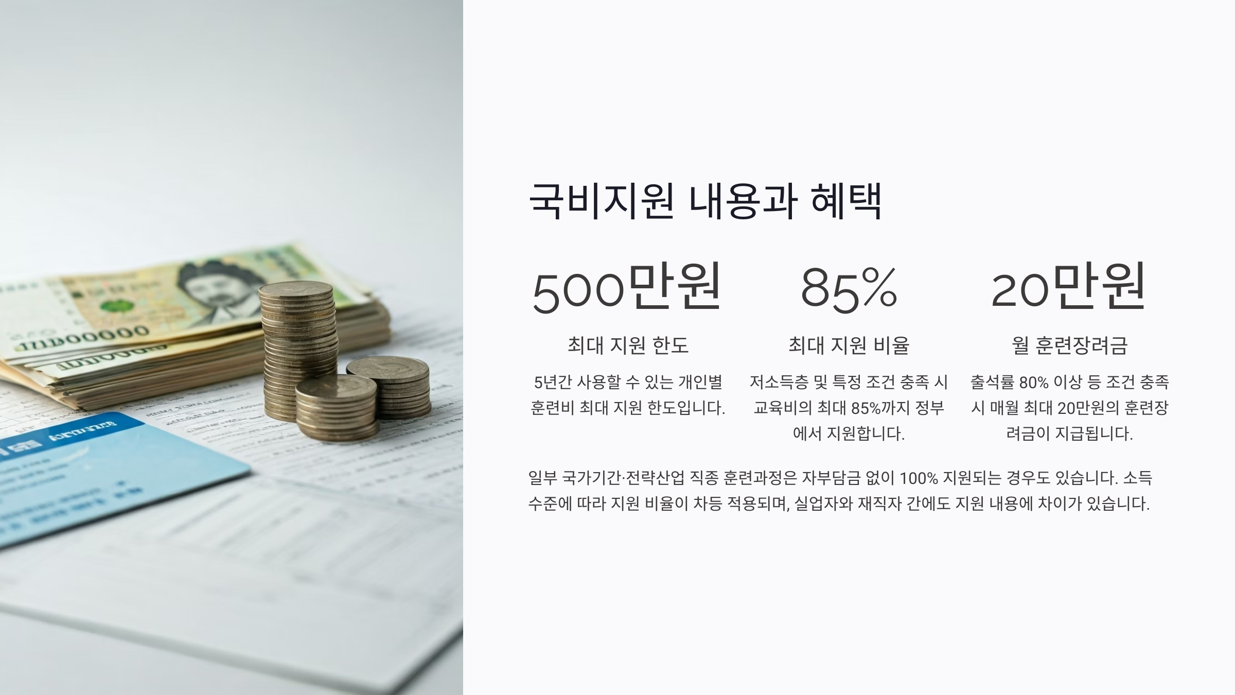2025년 기준, 개인당 300만 원에서 최대 500만 원까지의 훈련비를 5년 동안 지원받을 수 있어요.