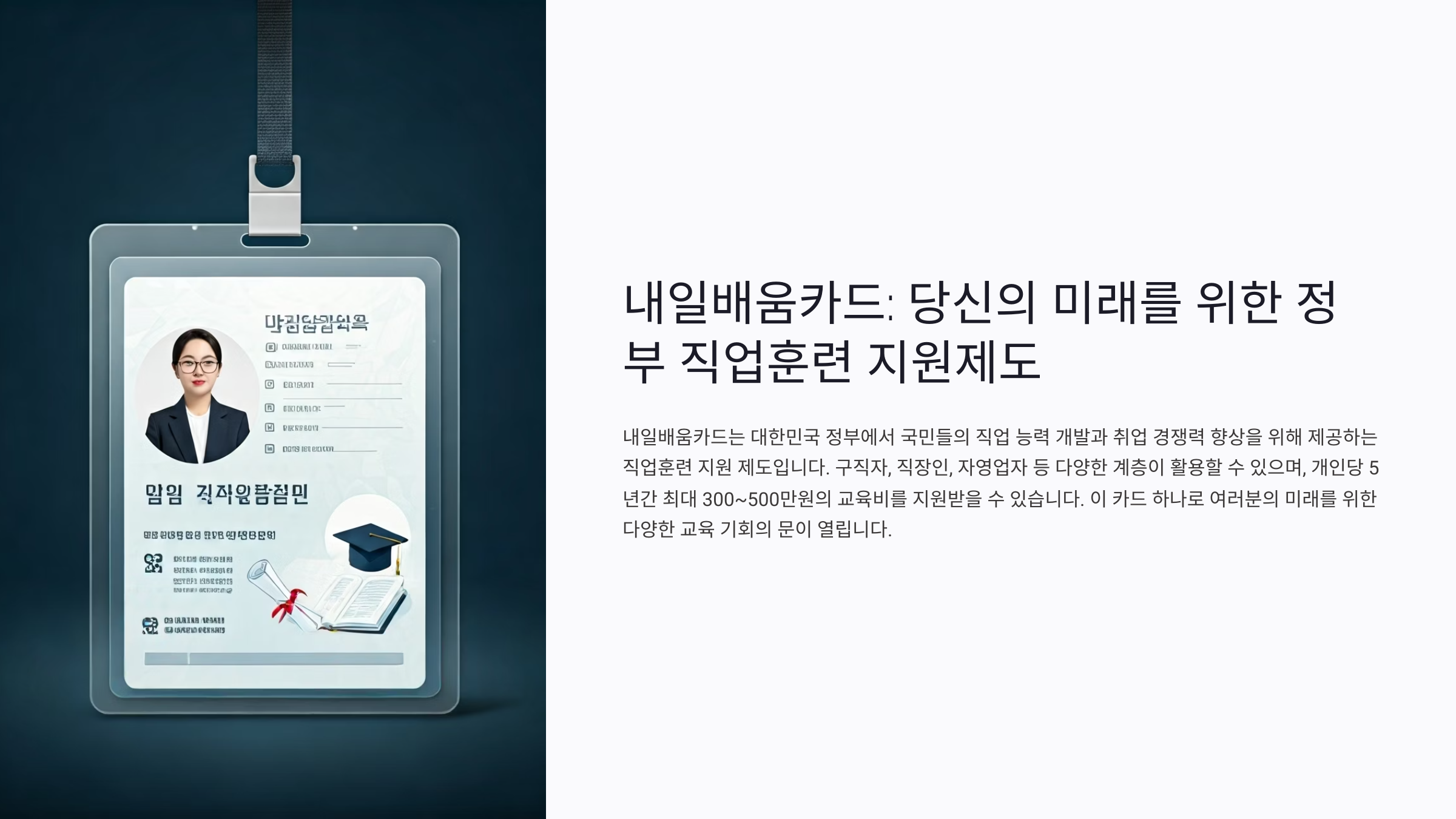 내일배움카드는 직업능력 개발을 위한 대표적인 정부지원 제도예요.