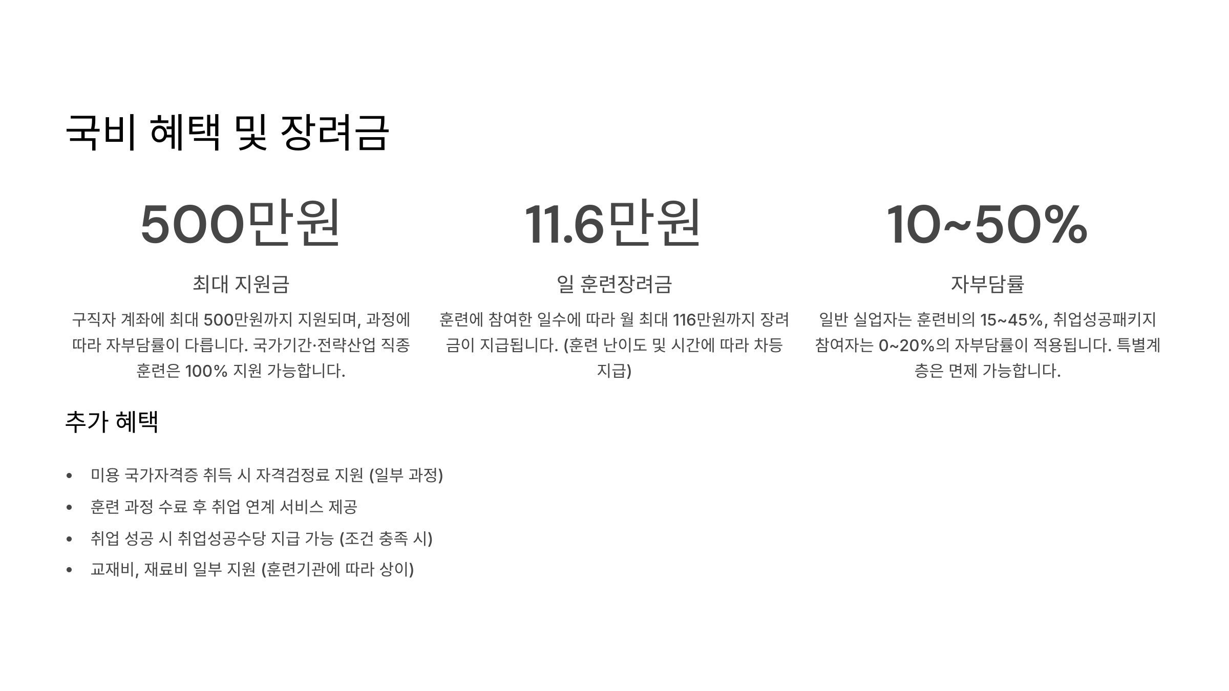 | 훈련장려금 | 최대 월 116,000원 |