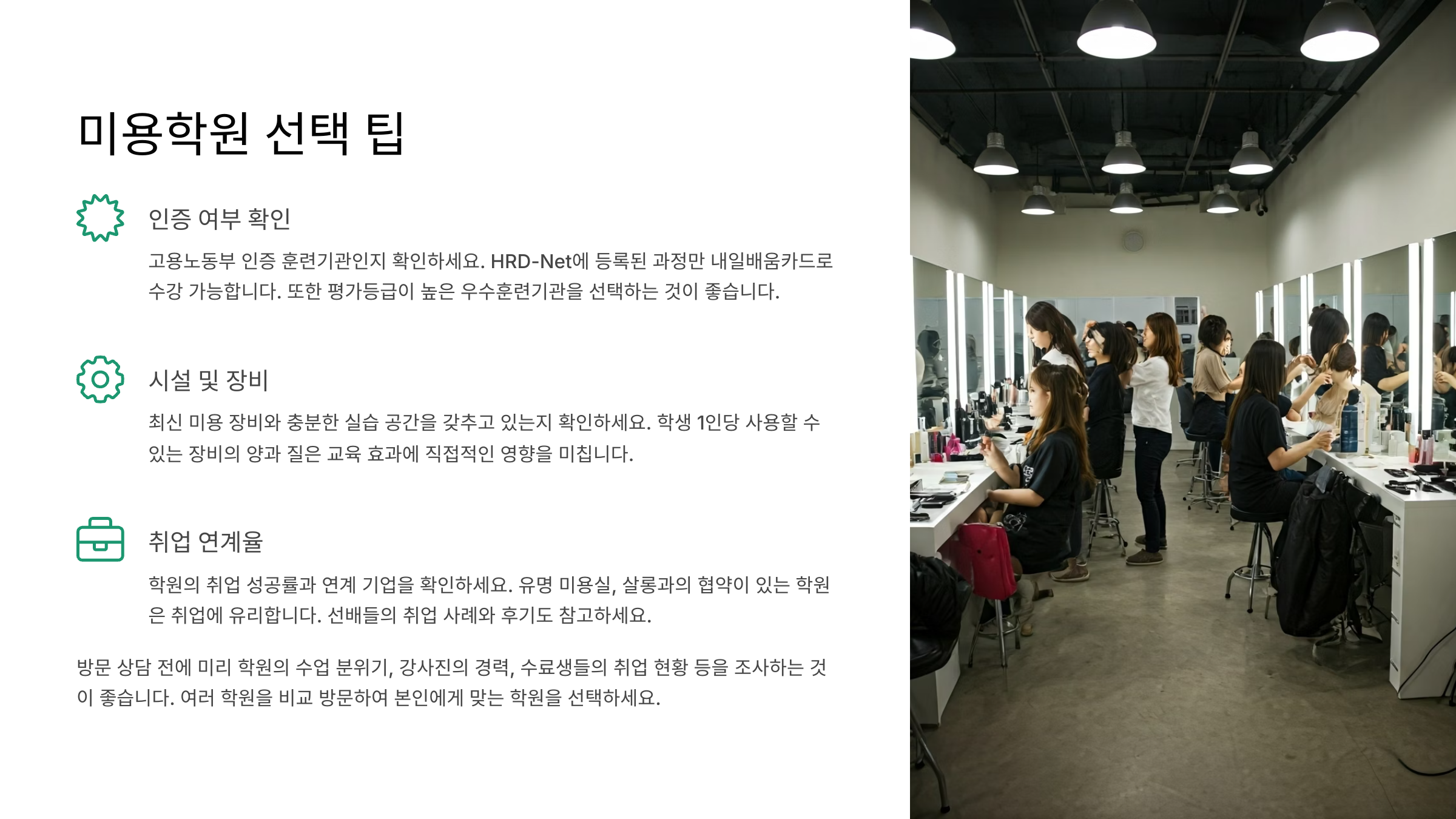 💡 미용학원 선택 팁