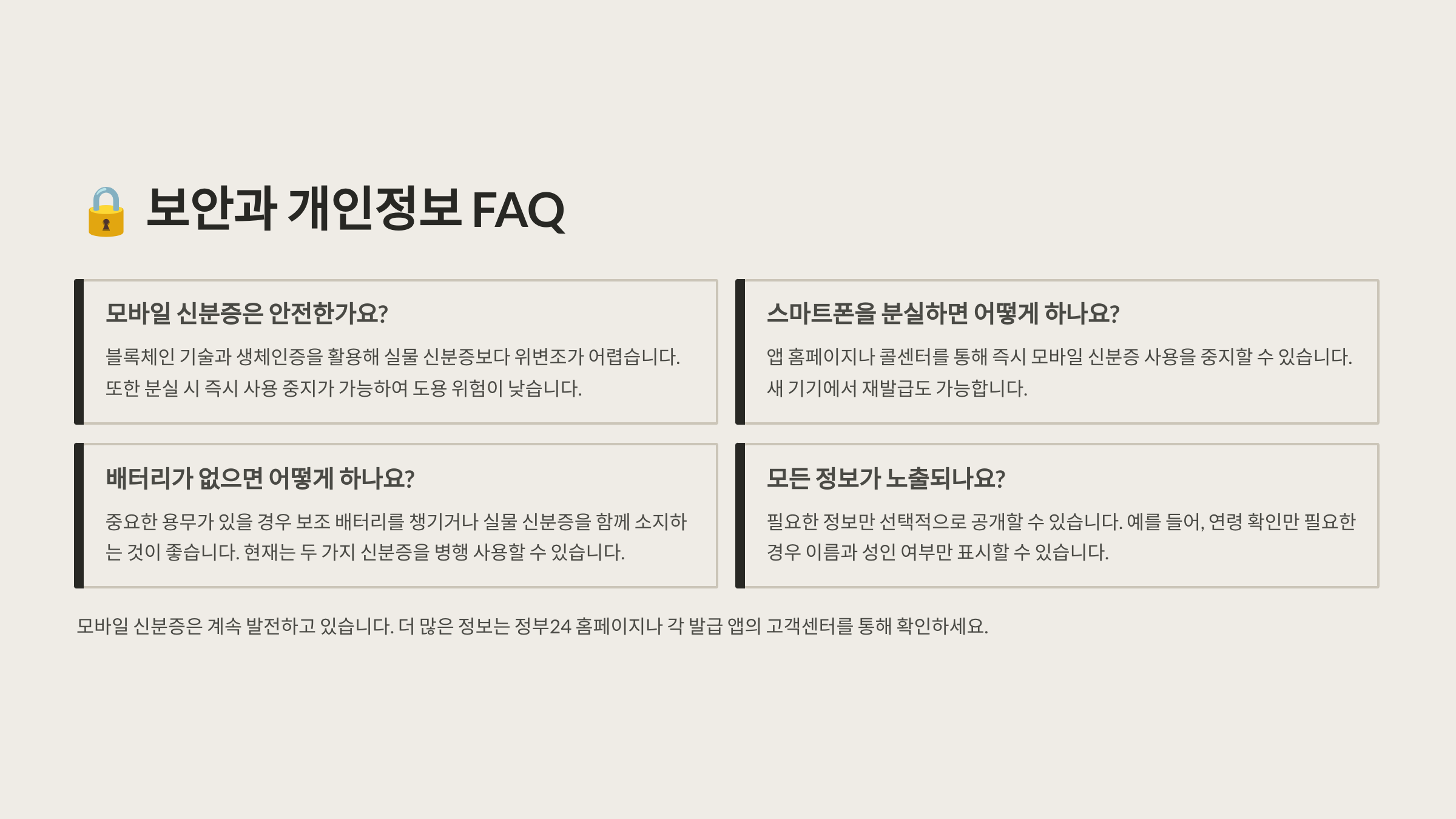 사용자가 기본적인 보안 수칙만 잘 지킨다면, 모바일신분증은 실물보다 훨씬 강력한 신분확인 수단이 될 수 있어요.