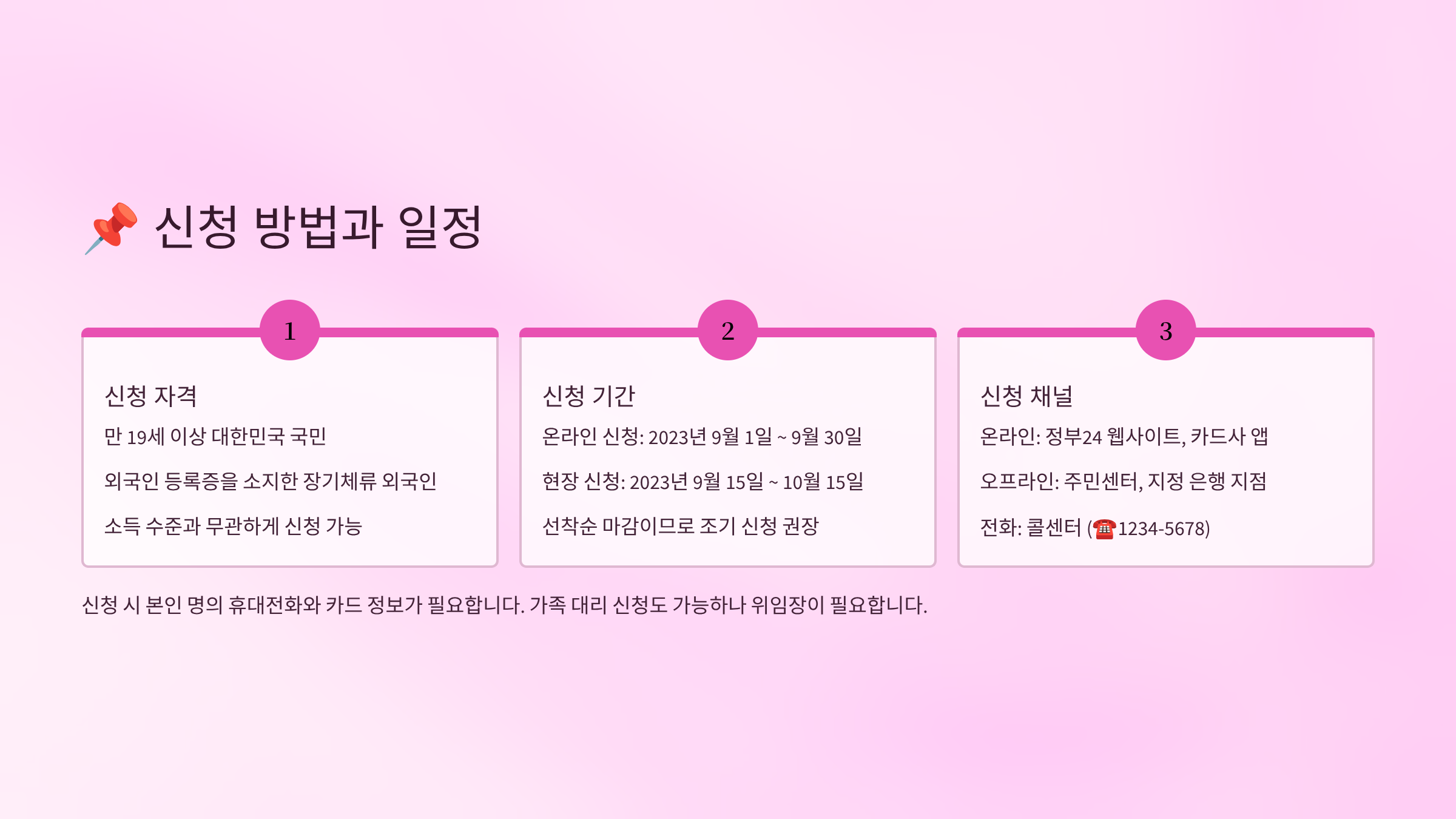 2️⃣ 신청: 온라인 또는 오프라인으로 원하는 방식에 따라 신청하면 돼요.