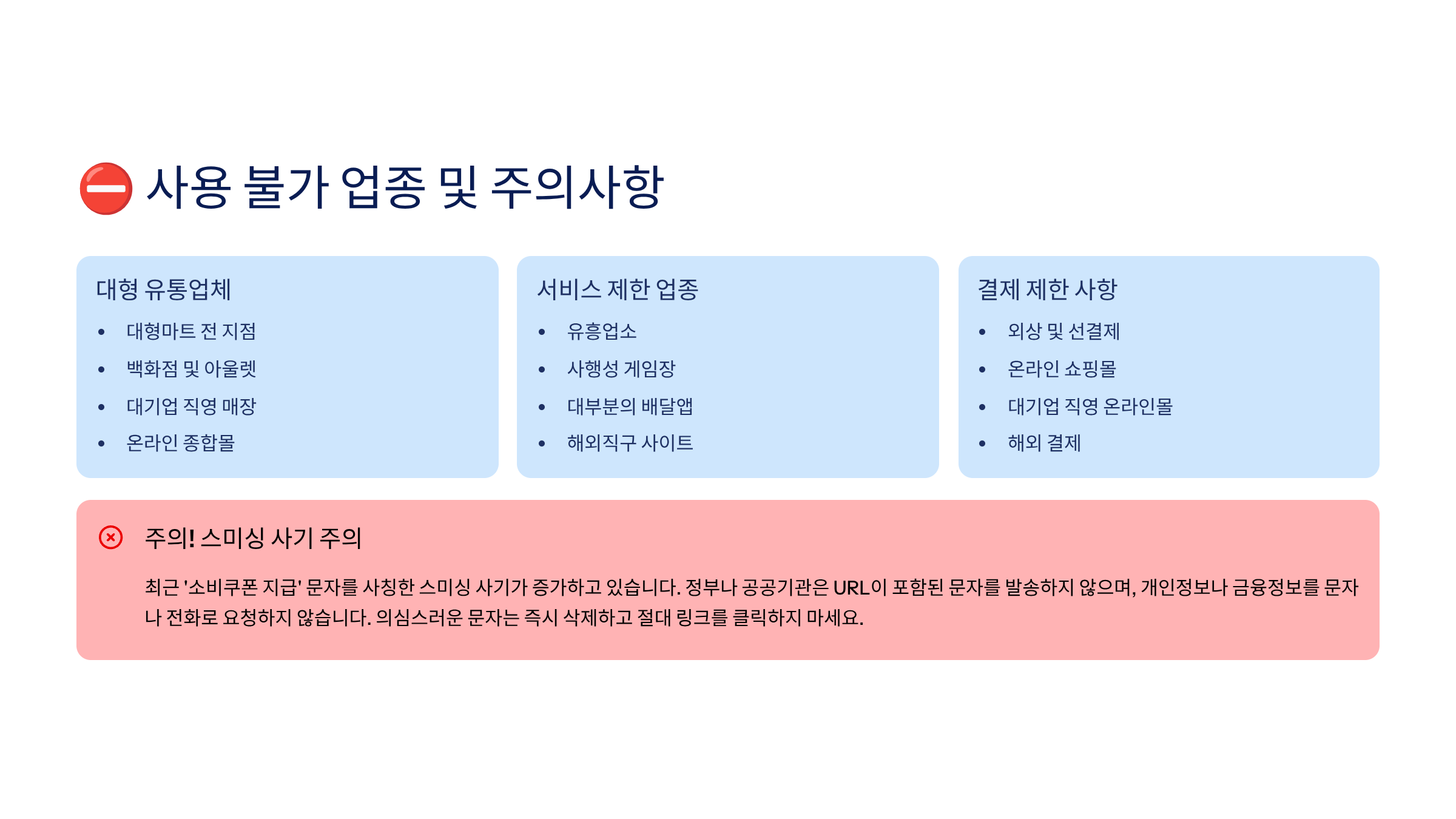 | 대형마트·백화점·SSM | ❌ 사용 불가 |