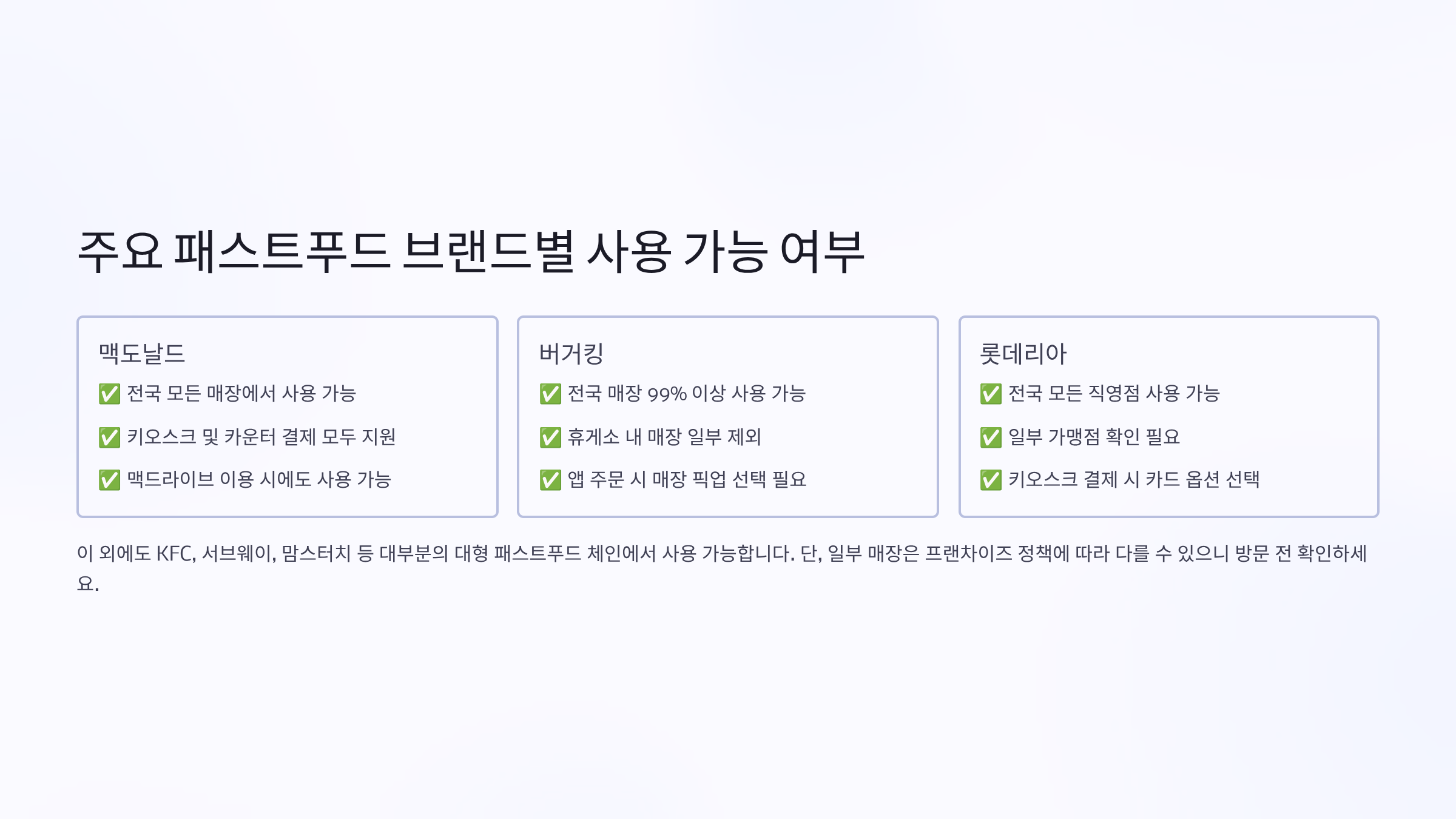 🍔 주요 패스트푸드 브랜드별 사용 가능 여부