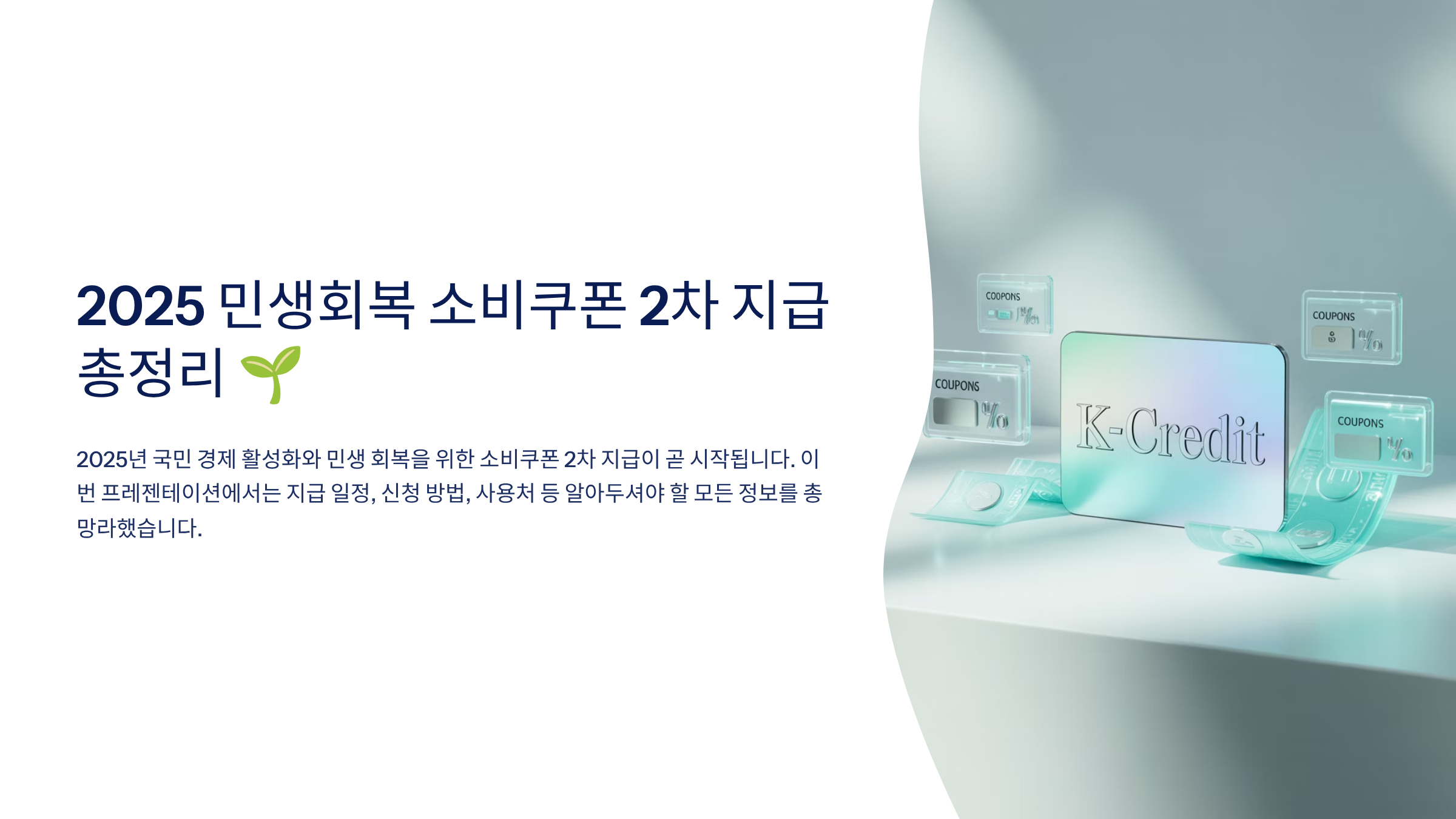드디어 민생회복 소비쿠폰 2차 지급 일정이 확정되었습니다! 2025년 9월 22일부터 10월 31일까지 신청을 받으며, 국민의 90%가 1인당 10만원의 추가 지원금을 받게 됩니다.