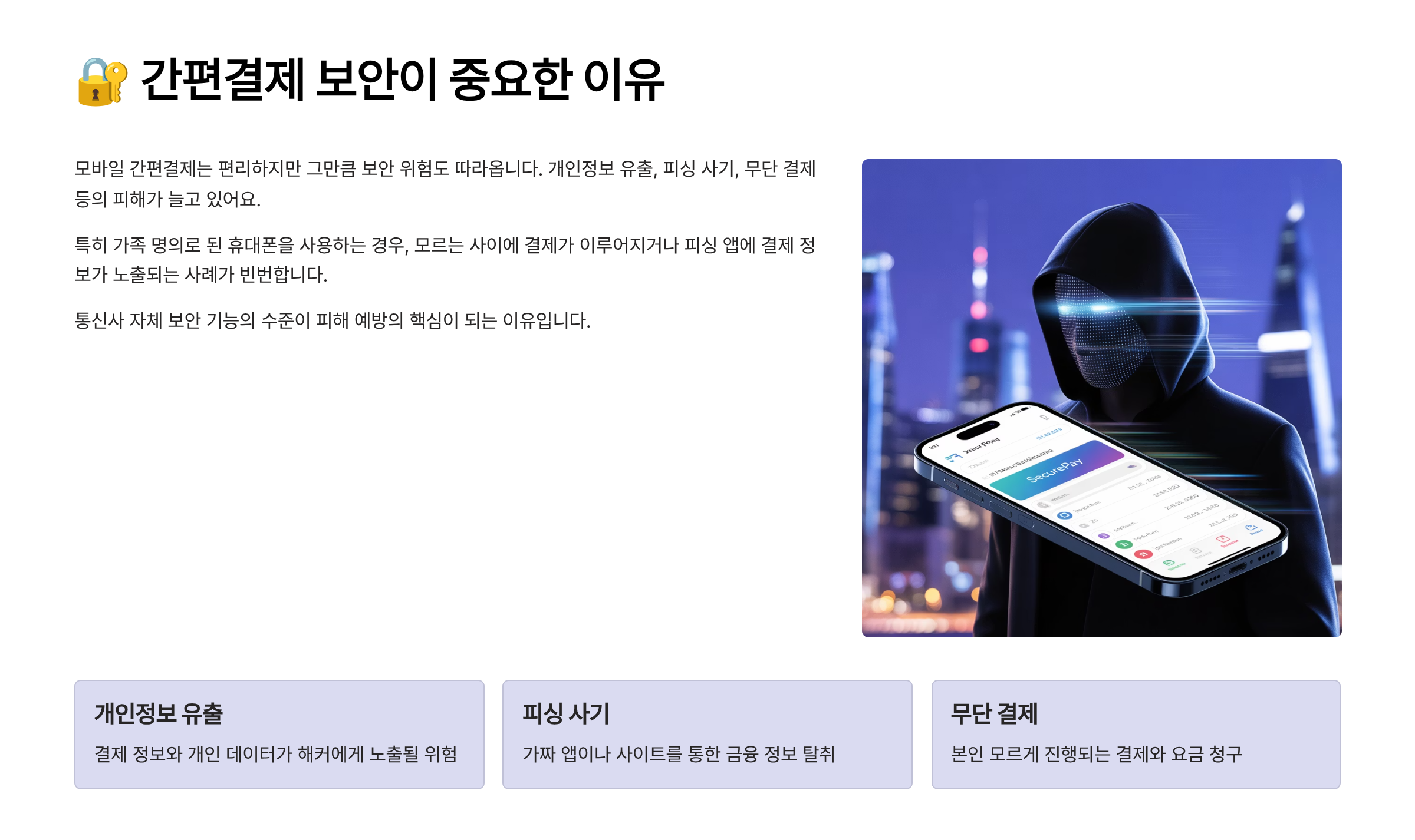 요즘 모바일 간편결제가 정말 편하죠? 하지만 그만큼 해킹, 피싱, 무단결제 사고도 늘고 있어요. 특히 휴대폰 본인 인증만으로 결제가 되기 때문에 단말기만 탈취당해도 피해를 볼 수 있다는 게 문제예요.
