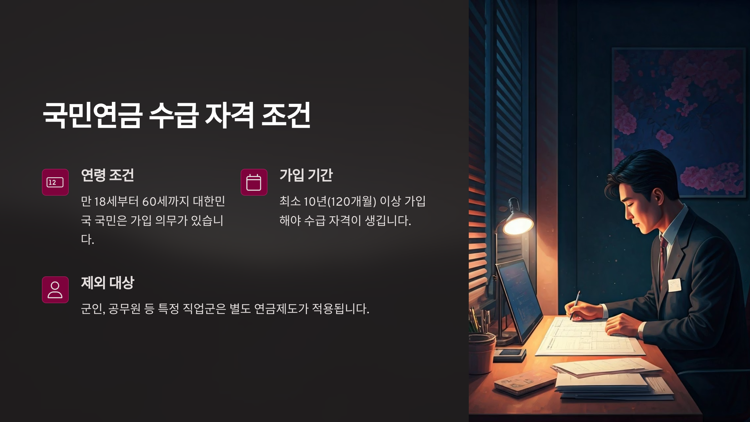 📋 국민연금 수급 자격 요건 요약