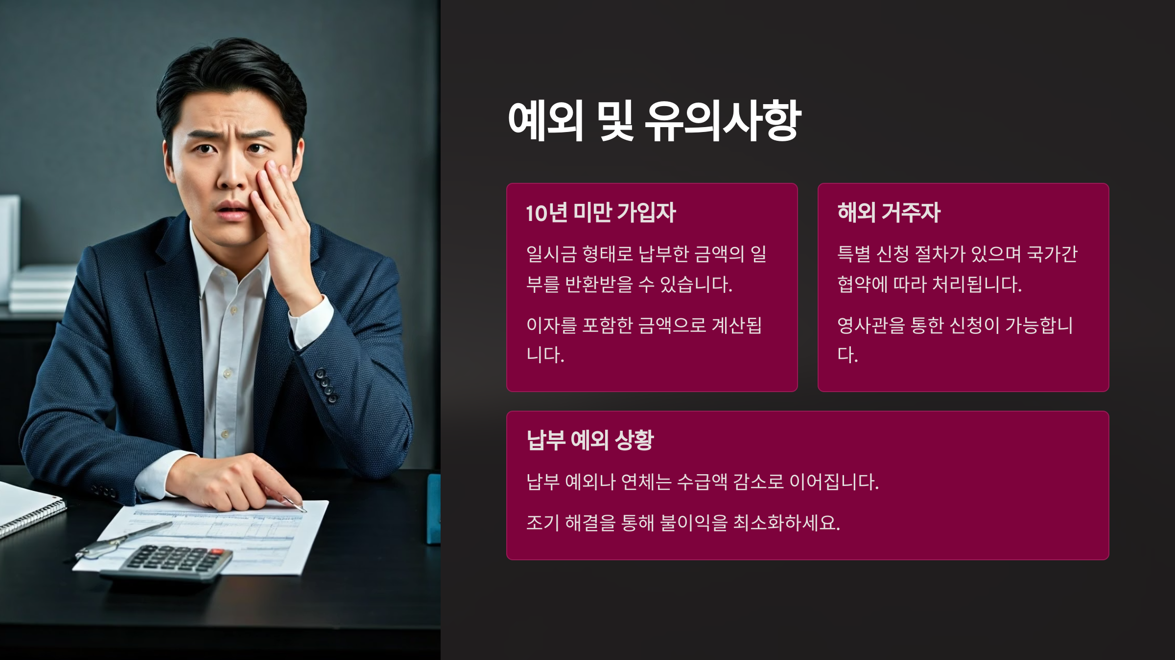 | 10년 미만 | 수급 불가 (일시금) |