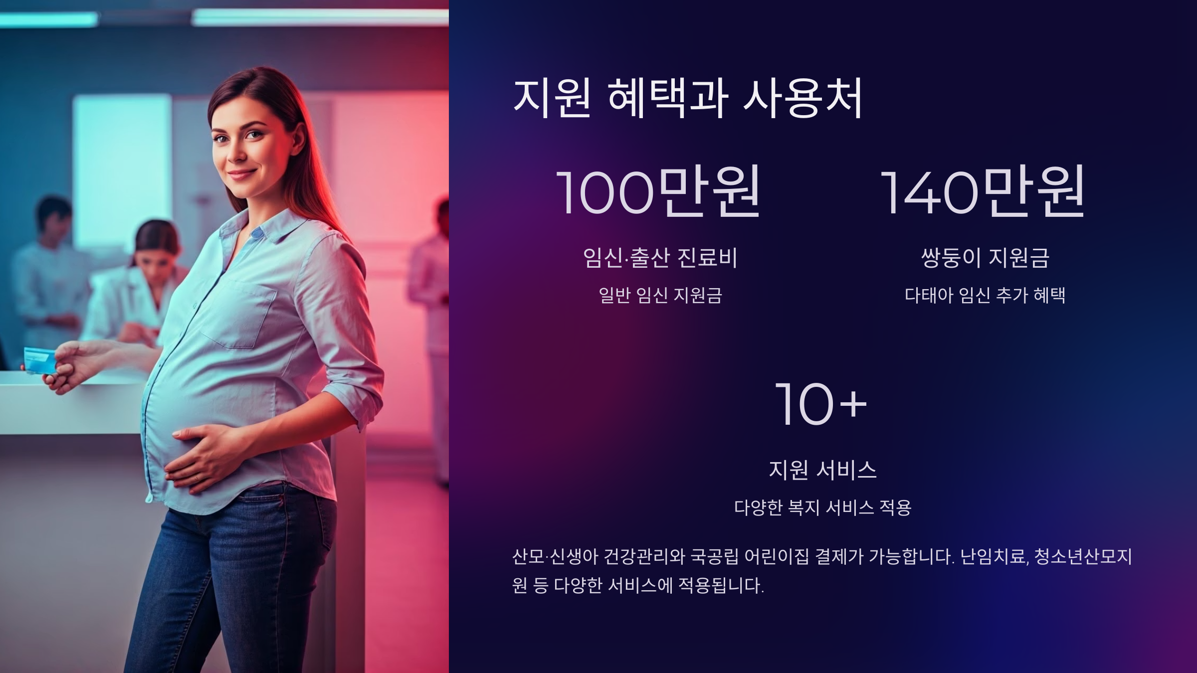 다태아는 140만 원까지 지원되고, 고위험 임산부의 경우 추가 지원도 받을 수 있어요.