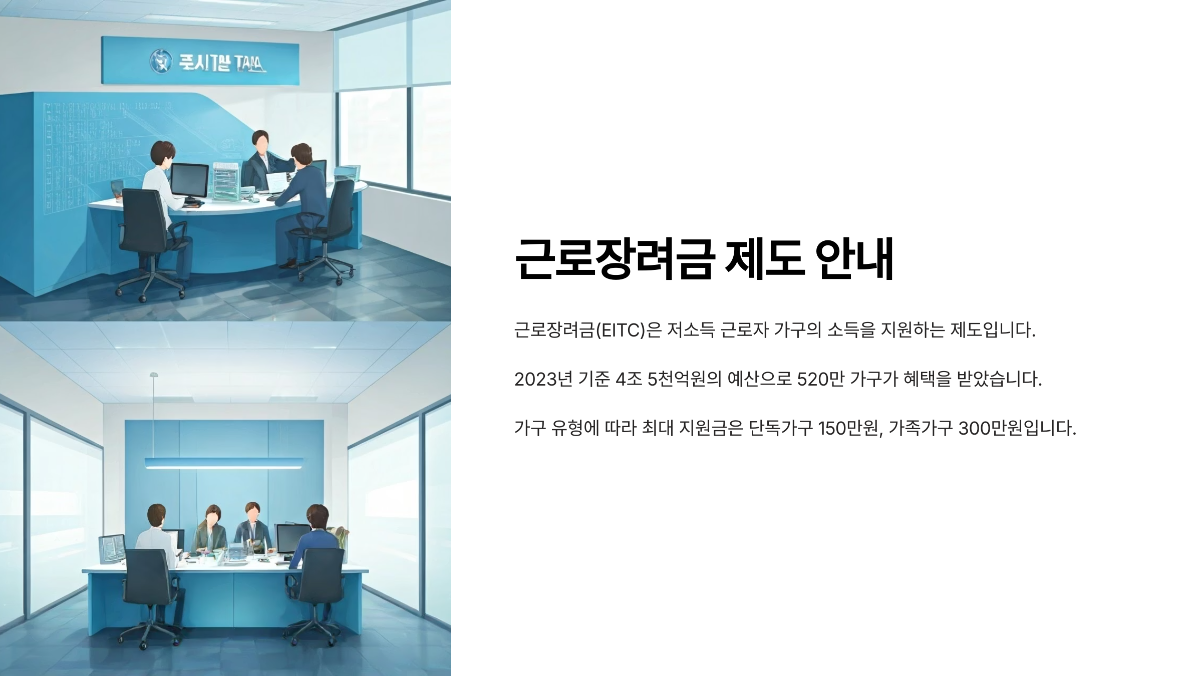 근로장려금은 열심히 일하지만 소득이 낮은 가구에게 정부가 현금을 지급하는 대표적인 복지 제도예요. 미국의 EITC(근로소득세액공제) 제도를 벤치마킹해 도입됐고, 2009년 처음 시작됐어요. 그 당시엔 자녀가 있어야만 받을 수 있었지만, 현재는 단독 가구나 맞벌이 가구도 신청할 수 있게 확대됐어요.