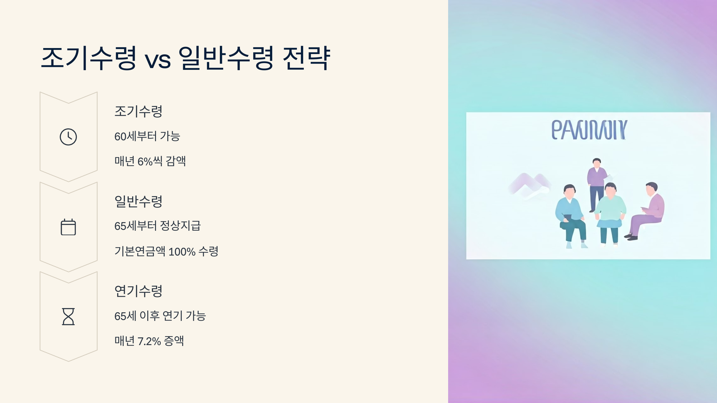 국민연금은 원칙적으로 만 65세부터 받을 수 있어요. 하지만 만 60세부터도 조기수령이 가능해요. 단, 조기수령을 하면 매년 6%씩 감액되어 최대 30%까지 줄어들 수 있어요.