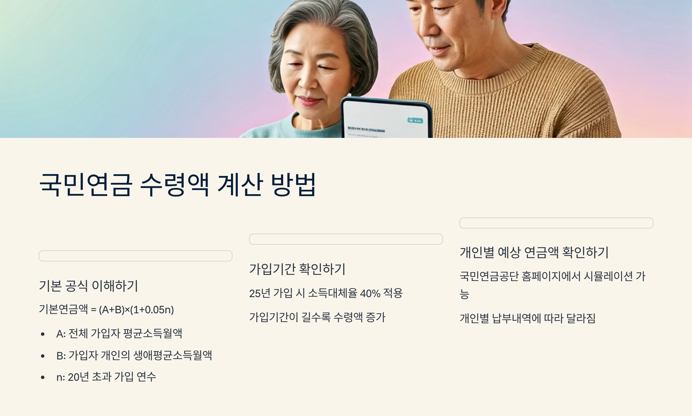 국민연금 수령액은 단순히 ‘얼마를 얼마나 냈는가’만으로 계산되지 않아요. 가입기간, 평균소득월액, 전체 가입자 평균소득까지 반영돼서 산정된답니다.