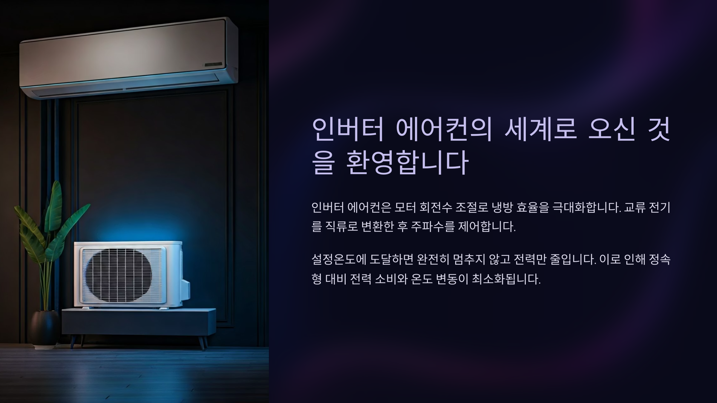 이 멘트는 괜히 나오는 게 아니에요. 인버터 기술은 에너지 절감의 핵심이에요.